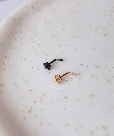 Piercing tipo arete con diseño de resorte que da la ilusión de doble perforación ya sea en oreja o en nariz.