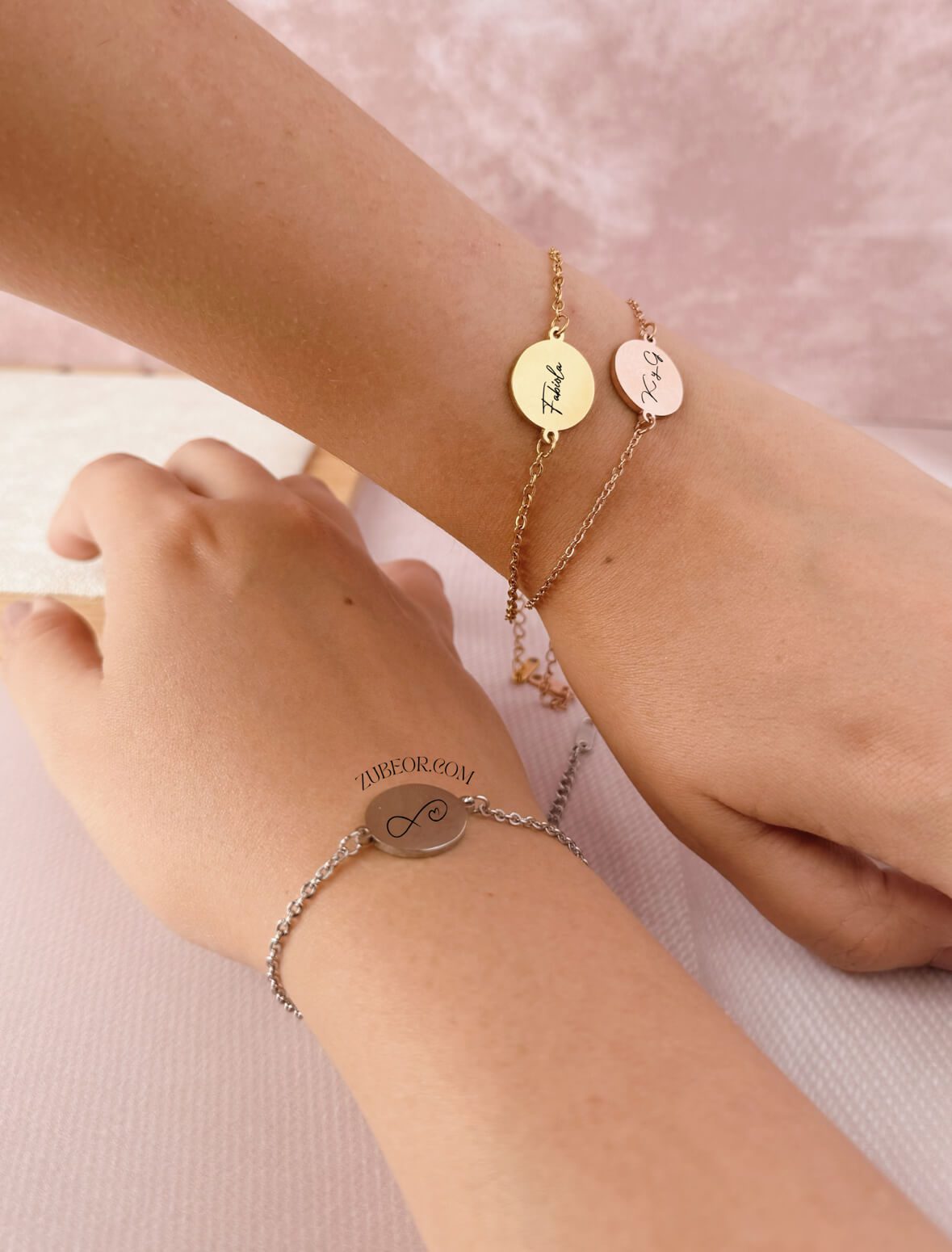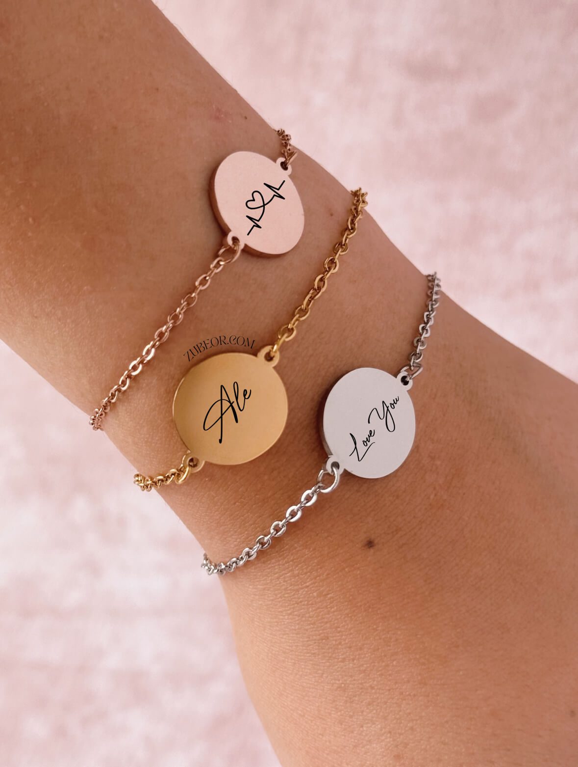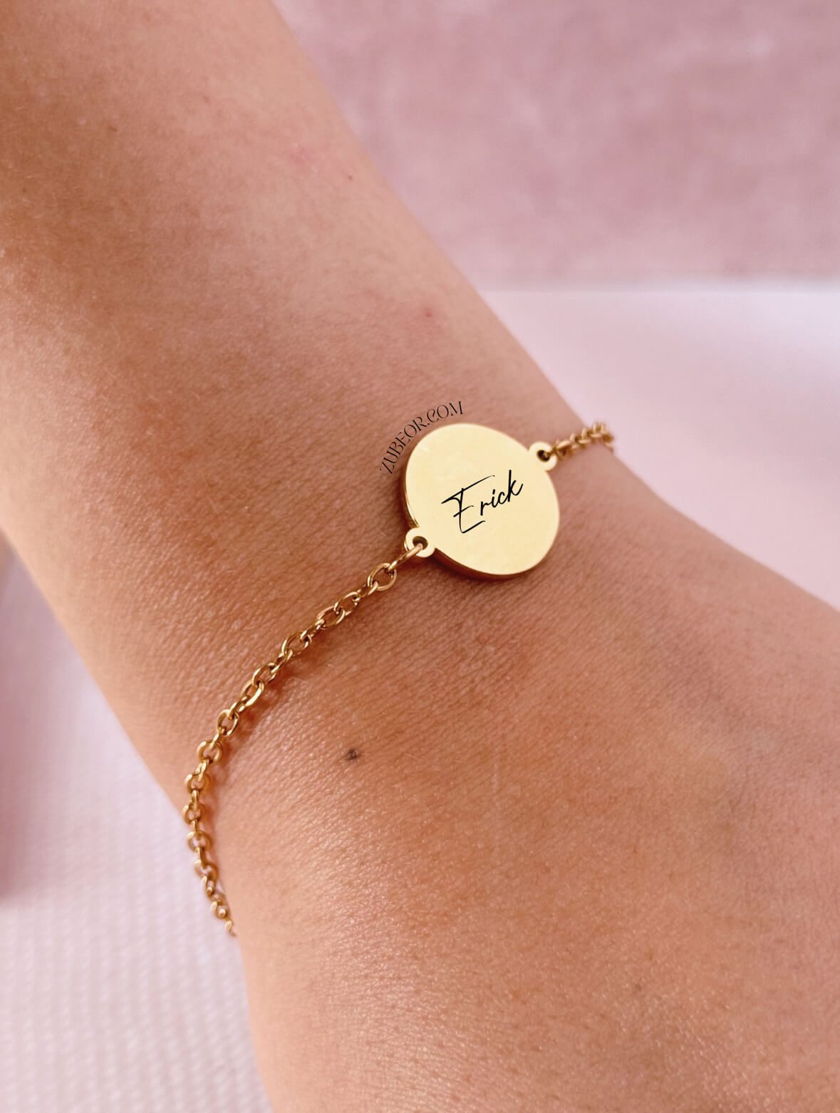 Pulsera con diseño grabado. Se puede personalizar con la frase o nombre que indiques.